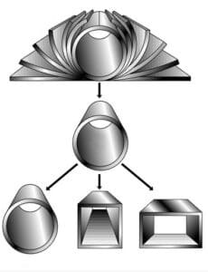 The transformation of steel sheets into hollow structural sections(HSS) in the cold rolling method is done in several different ways, and this article mentions one of the most up-to-date and optimal production methods. In this method, the flat steel sheet is continuously formed along the longitudinal axis during a cold rolling process to become a tube with a round cross-section. It is done by moving the sheet through a set of rollers. The edges of the sheet are placed adjacent to each other and heated by high-frequency induction welding or contact welding and the edges sink into each other as a result of welding to form a continuous longitudinal weld without the need to add filler metal(electrode) to be formed. Then the weld seam is bent and finally it is converted into round, square or rectangular sized sections by passing through a series of sizing rollers during another cold rolling process.